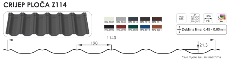 1. Karakteristike Limene crijep ploče z114