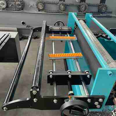 The system is fully controlled by a PLC unit with touchscreen display, allowing operators to set sheet length, batch quantity, and speed. Error alarms and emergency stop features enhance safety and convenience.