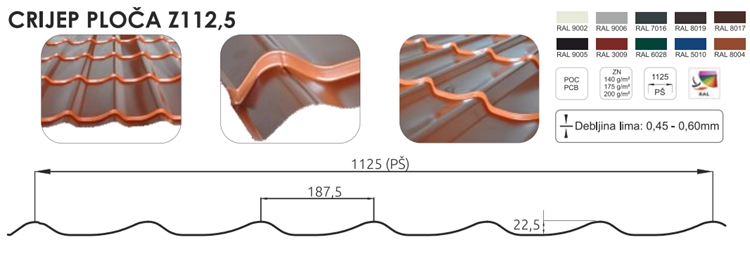 1. Značajke Limene crijep ploče z1125