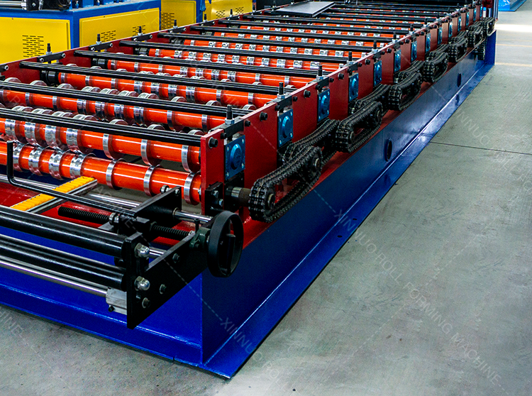 Barreiras de segurança cobrindo o sistema de conformação (incluindo rolos, eixos, engrenagens e correntes) e o sistema de corte hidráulico, protegendo efetivamente os operadores.