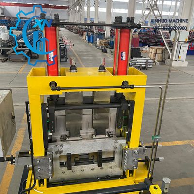 Perfuração do perfil C após conformação controlada por PLC, garantindo precisão na quantidade e posição. Corte hidráulico com três lâminas Cr12/Cr12MoV/Cr12, garantindo durabilidade e precisão no corte.